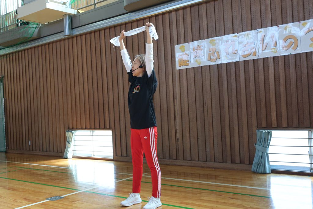 みんな健康体操でガンガン体を動かしたので、汗だくです![]()