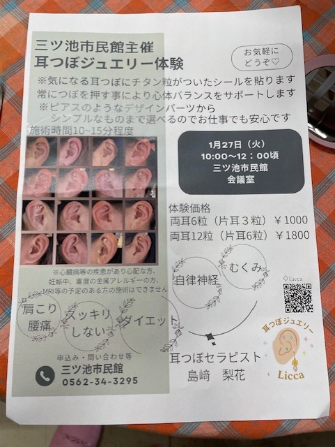 もう速攻少ない枠を取り、耳つぼジュエリー体験をしたのでありました